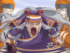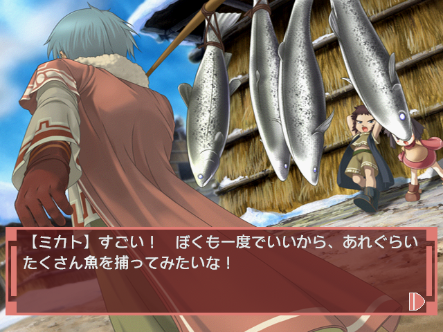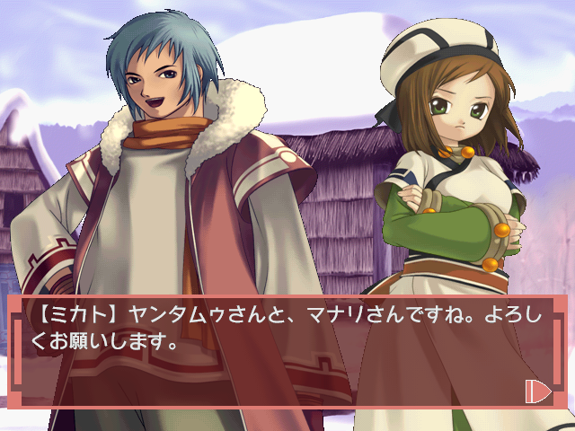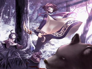 Nakoruru was so famous that eventually she got her own game, subtitled Ano Hito Kara no Okurimono (or “A Gift from That Person”). Sadly, it’s not a fighting or even an action game, but rather a visual novel concentrating on Nakoruru’s Ainu village of Kamuikotan. The player actually takes the role of a young girl named Mikato, who’s sent to watch over Nakoruru as she protects the village from evil. Like most visual novels, there’s not much to do but pick different dialogue selections and watch/read the story play out, so naturally this is all mostly useless unless you know Japanese. Every once in a while the story is broken up by mindless mini games, where you click on the holes of an Ocarina to imitate a tune or dodge a wolf by pressing left and right as it appears. Although initially released for Windows, it was eventually ported to the Sega Dreamcast. The limited edition version includes a Nakoruru doll.