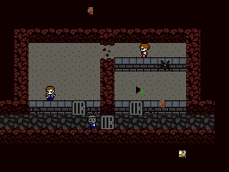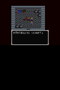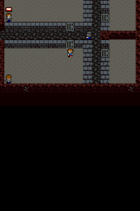 Less than a month after the release of Nanashi no Game Me, Square Enix released two cursed games through the Japanese DSiware store. These share the simple but challenging gameplay of those found inside the main games, the RPG world acting as an overworld between the platformer levels. They cost 500 Nintendo points each and are not available in any other region. This is unfortunate, as it looks like they contain little to no text necessary for playing. Literally translated, the names are “Extreme Misfortune Side Square Action Vol. 1 Cursed Game: Blood” and “Vol. 2 Cursed Game: Prison”.