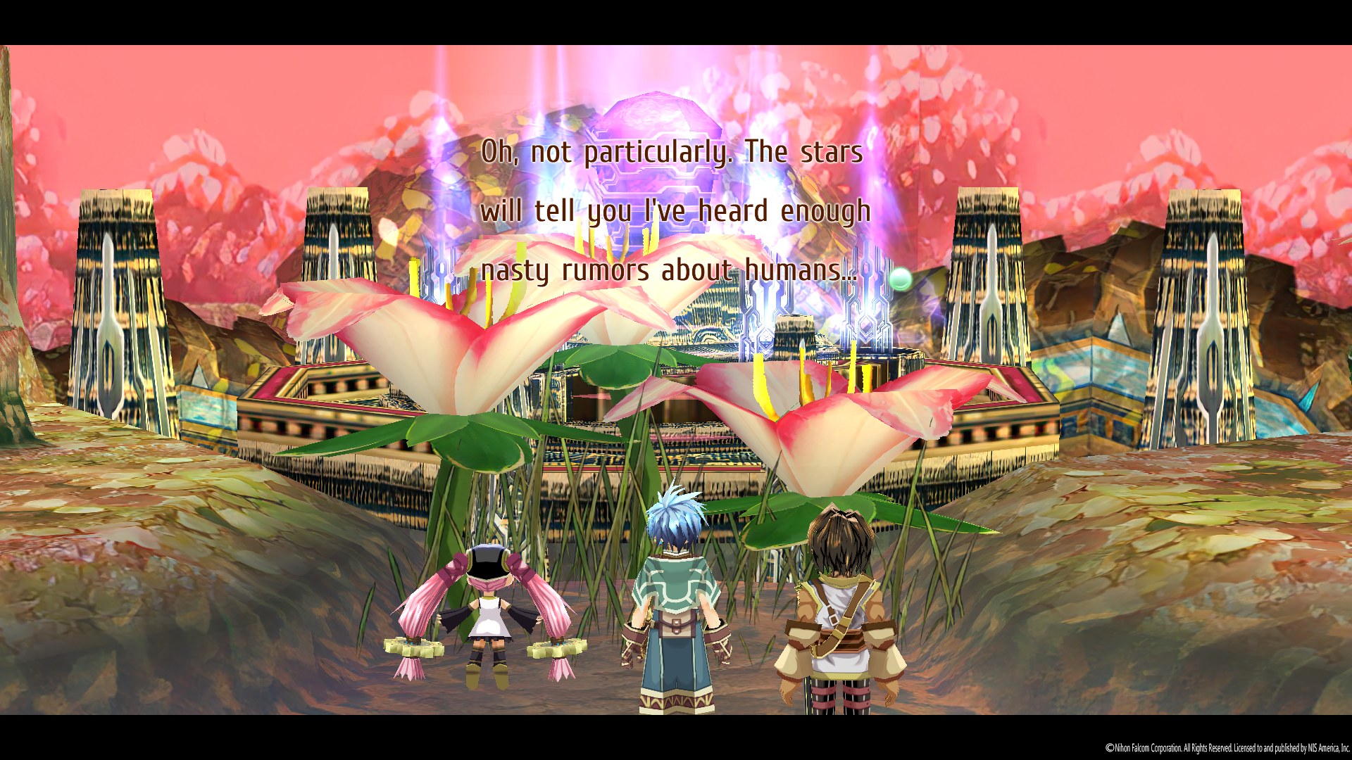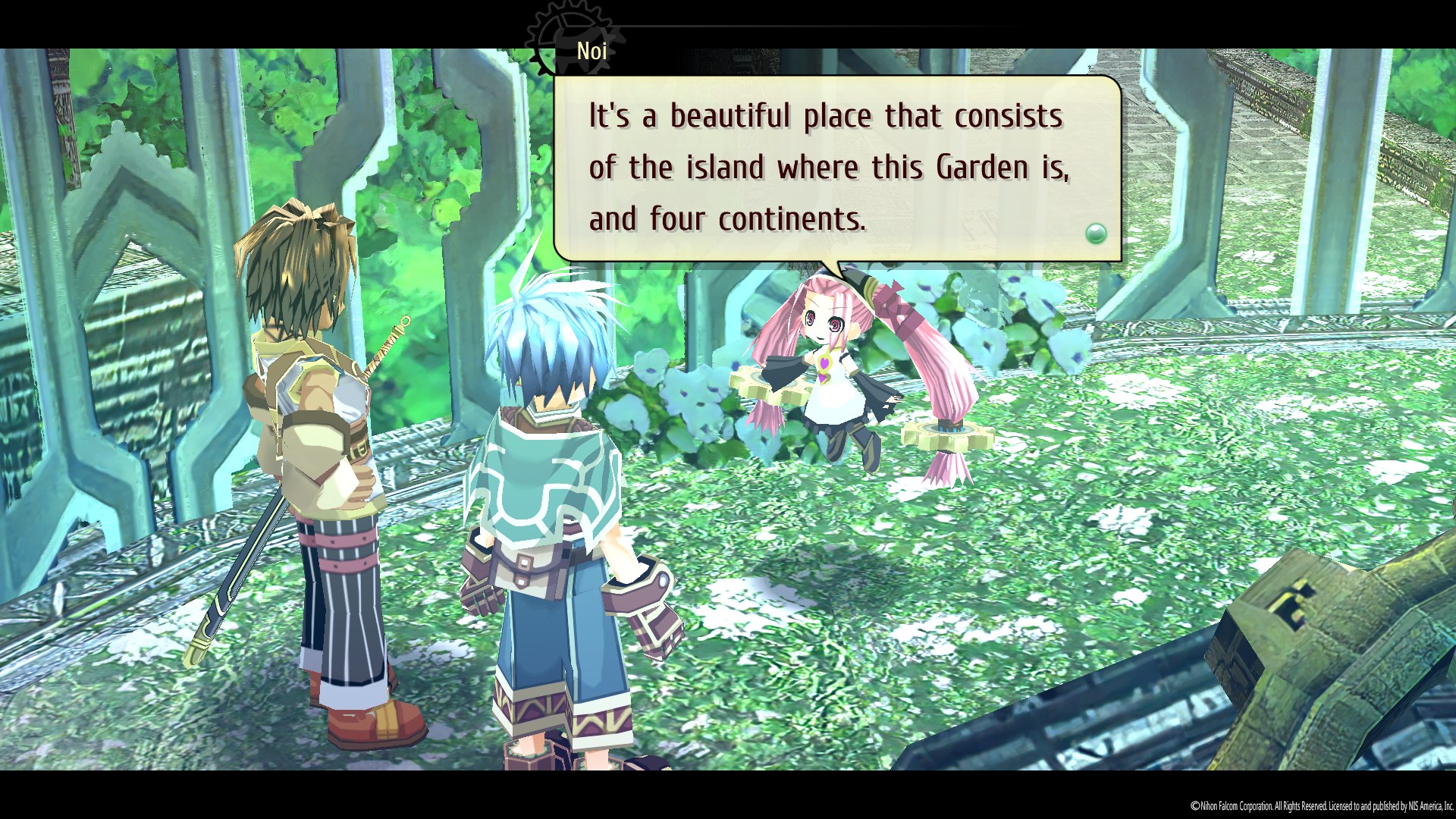 Everything gets set in motion when something much larger falls from the sky – that is, a whole set of ruins. Nayuta explores and discovers the entrance to another world, called the Garden of Stars. Here he can visit the worlds seen through the crystal fragments, broken up into four lands, but collectively known as Terra. Nayuta’s sense of wonder sets him off on an exploration of these lands, which will help him uncover the history behind Lost Heaven, and the disappearance of the race known as the Mythos.