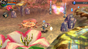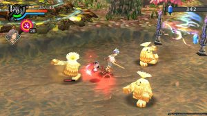 The cooking system from Zwei!! makes a return, albeit in modified form. Throughout the stages, you find various plants and meat which can be cooked into a variety of food. When you first begin cooking, you need to be taught by your sister Eartha, but once you’ve made a dish once you can make it without revisiting her. Food not only replenishes health, but also grants you extra experience points.