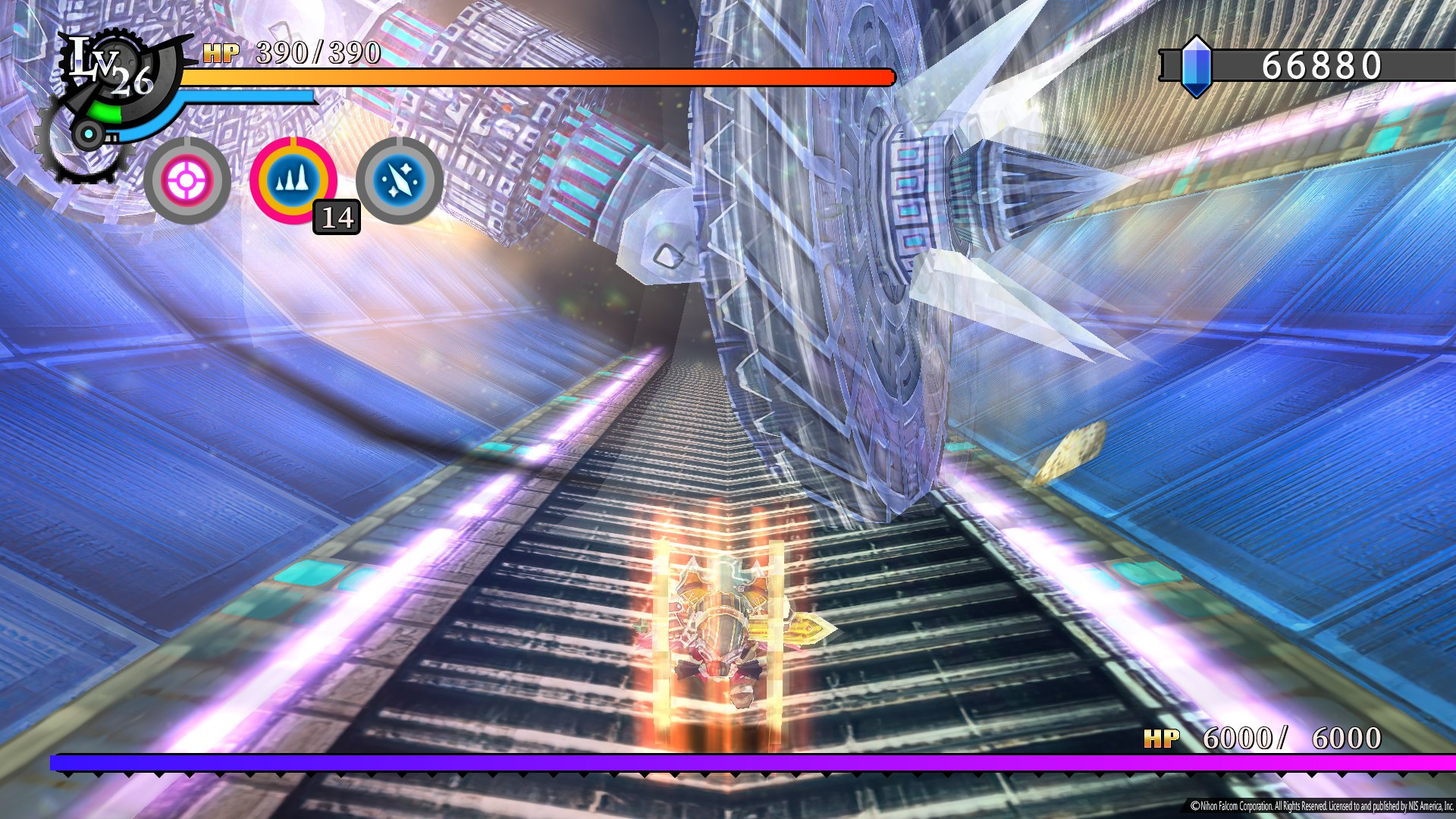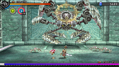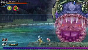 The Ys games are known for their fantastic boss battles, and The Legend of Nayuta actually goes even further to one-up. Not only are they gigantic, but they drastically change forms and attack patterns a few times throughout the fight. One of the best boss battles, in a game filled with awesome boss battles, is against a gigantic fish (which, for some reason, has a set of wheels attached to its hind quarters). In the first stage of the battle, you fight on a bridge alongside its pool, taking down its fins as it swims by. After sustaining enough damage, it’ll bit off a section of the platform and send you spilling over the edge, with the battle continuing as you raft down the waterfall at top speed. In spite of their complexity, they aren’t as difficult as something like Ys: The Oath in Felghana, at least on the default difficulty settings.