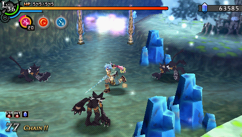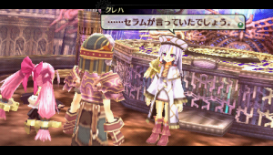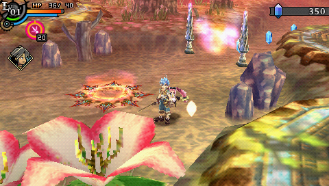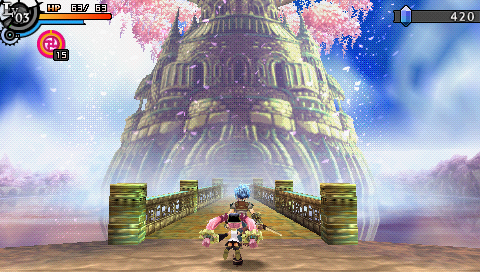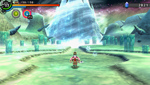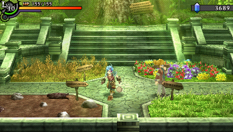 The Legend of Nayuta seems to run on a similar engine to Ys Seven, with polygonal characters replacing the 2D sprites of the other Trails games. The graphic design is even more impressive, with nearly every screen exploding with color and fantastical designs. In its initial PSP release, it looks a bit jagged due to the low resolution of the platform, but even within those constraints, it’s easily the best looking game on the system.