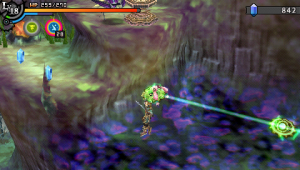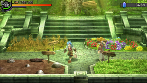 Legend of Nayuta might feature the Trails name, in the English subtitle anyway, but in actuality, it’s much closer to Zwei!! or Gurumin, two earlier series from Falcom’s action-RPG pantheon. Unlike Ys, there is no overworld to explore, as navigation between stages is handled via a map screen. The world of Terra is divided up into four different worlds; each world has three stages, a two-part temple stage, and a boss battle. Each stage is rated with a suggested experience level, though these aren’t requirements. In fact they’re a bit on the high side, so you can generally enter a stage and not have a problem if you’re a few levels below. The map screen also helpfully indicates what items can be found in the stage, and keeps track of your progress, in case you need to revisit earlier levels.