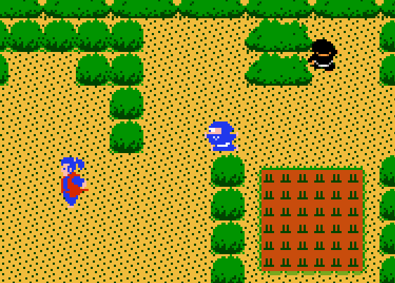 Ninjas of all types bounce out of bushes, rivers, even thin air to assault you from every direction. Like Link, Takamaru can only walk in four directions while enemies can attack at any angle. However, Takamaru also has unlimited use of long range weapons like shurikens, which can be upgraded to blades or fireballs, and also have a variety of spread shot types. These upgraded weapons use magic scrolls, so you can’t just run around shooting blindly, but most enemies will drop cards to replenish your power.