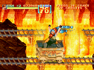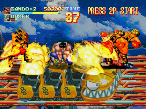 A few months later, the game was ported to the Sega Saturn, with a handful of changes to the mechanics and presentation. The soundtrack has been rearranged with slightly different instrumentation, with some tracks being played in a different key, and a couple of new pieces have been introduced. A few enemy palettes and backgrounds have been modified, some of the animation frames were added or redone, and certain effects have been tweaked to account for the Saturn’s difficulty with transparency.