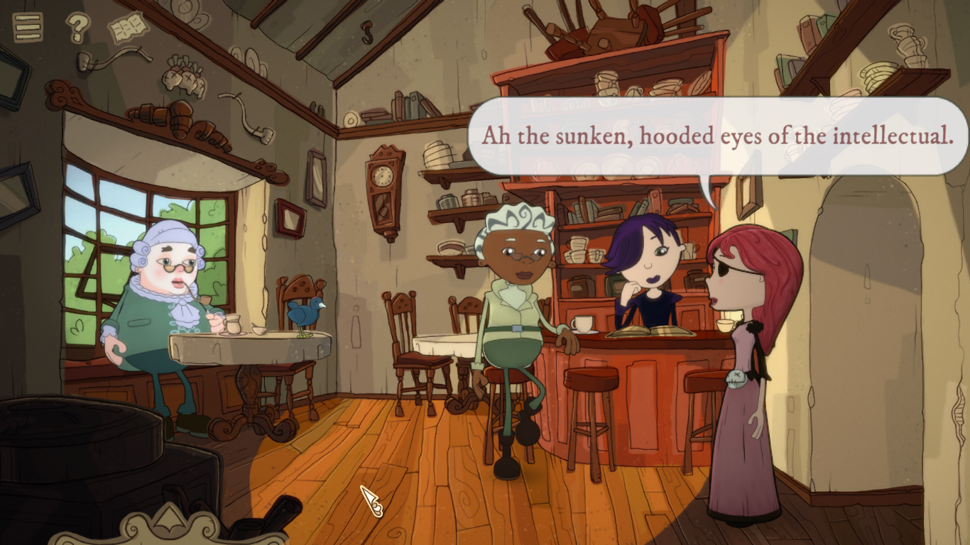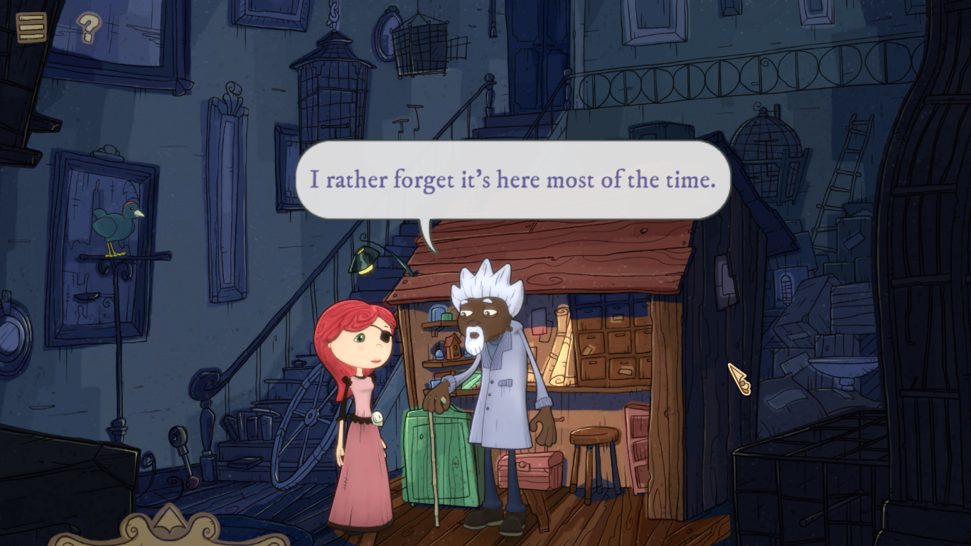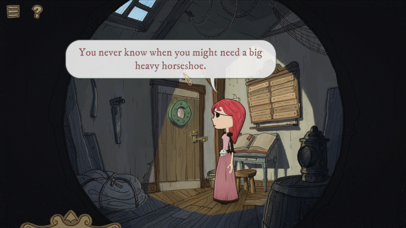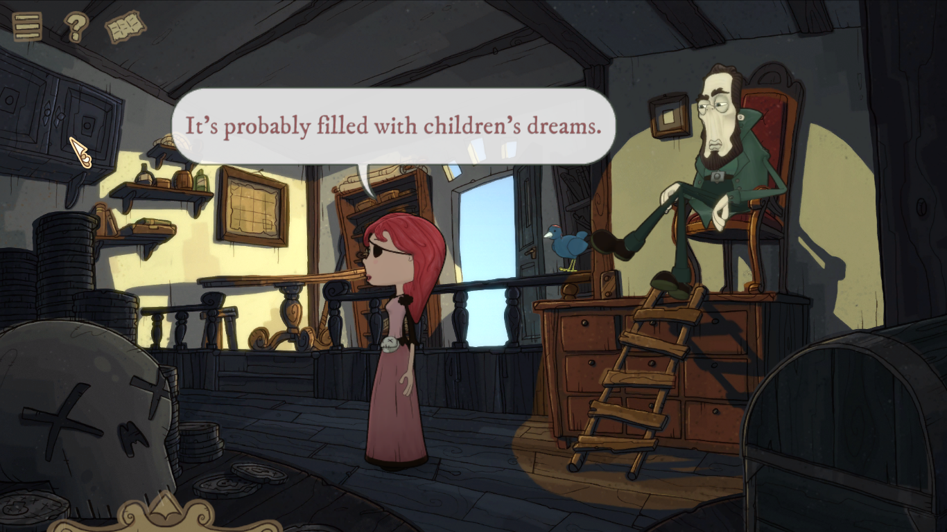 It even has a few more welcoming additions for newcomers. For example, if you hate pixel hunting, you can save time by clicking a little question mark at the top of the screen that puts a mark over every interactive item in sight. You can also get updates on what you still need to do from Sebastian once you find him, and the inventory has been changed to be an easy pop up at the bottom of the screen that disappears as soon as you move off it. It’s just all very easy to control and use, making for a very smooth experience. A lot of lessons have been learned since the original game nearly a decade ago.
