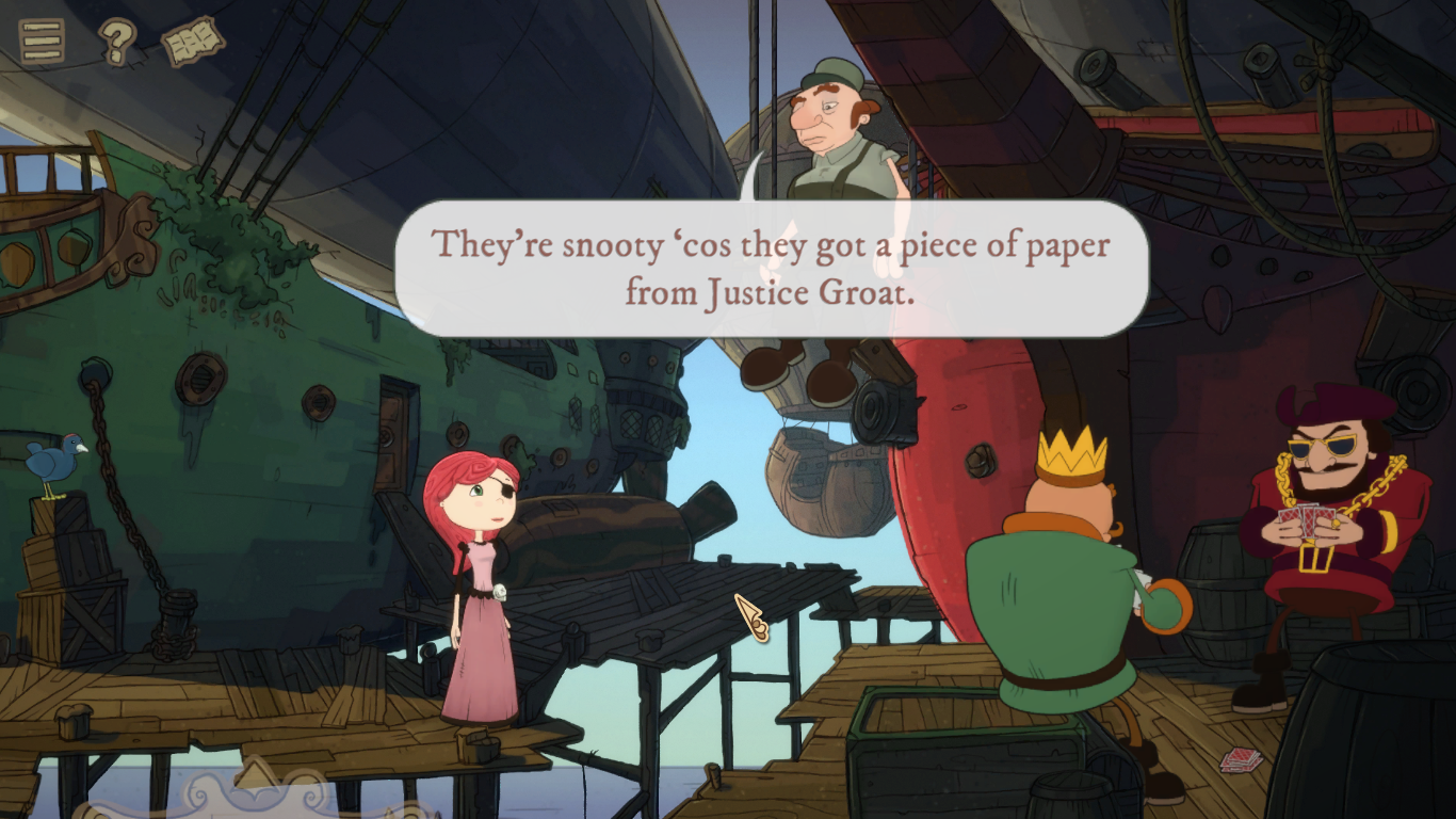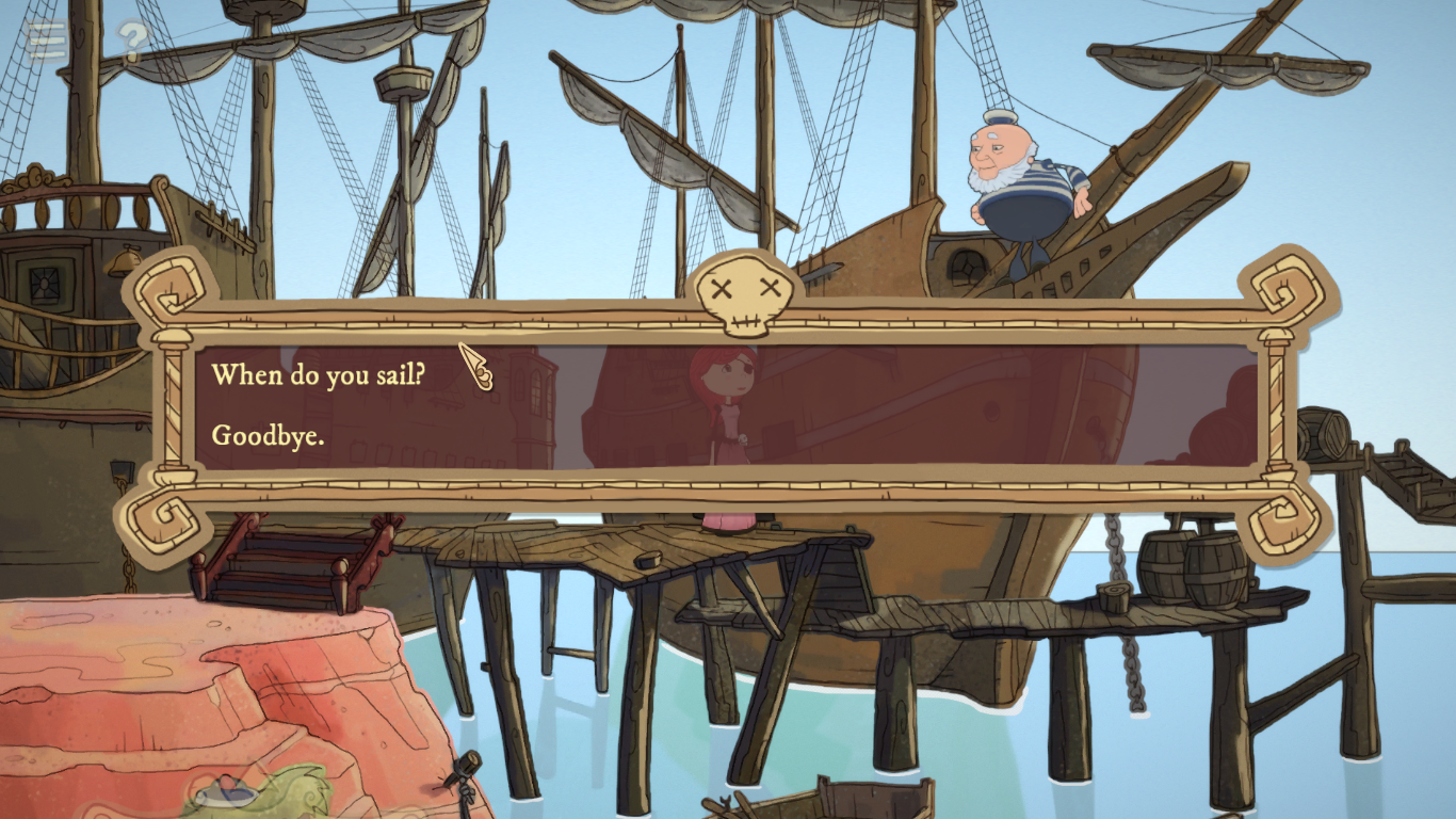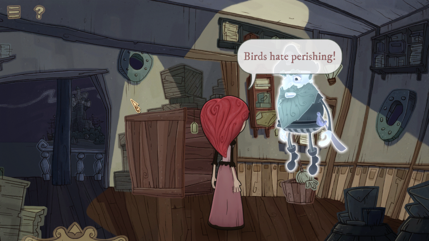 Taking place a short amount of time after the first game (though the two aren’t related from a plot standpoint), Nelly is working on a mail ship and is ordered by the ghost of Bloodbeard to resume her quest and find his missing treasure that the good old Baron is currently chasing after, thanks to Nelly giving him a book to decode pirate text in the last game pointing him there. The race is on to get to the treasure, leading Nelly and old partner Sebastian (Bloodbeard’s bird partner) across a gambling den with fallen nobility as race horses, a port town island and its corrupt government, and even a small viking town.
