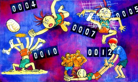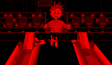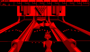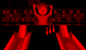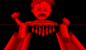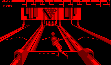 Compared to its system’s Eastern counterpart, Nester’s game has fewer options available to change up the play style than Virtual Bowling. Players can only choose their gender, dominant hand, and weight of the ball before they bowl. There are only 3 modes to play: the standard 10-frame Bowling game, a Challenge mode to try to knock down a combination setup of pins such as the dreaded 7-10 split, and a simple means of practice at your leisure. There’s no tournament play nor means to save your score, but there is a 2-player option, though you’ll have to share the same Virtual Boy, possibly having to readjust the 3D effect each and every time you switch out and prolonging the game further than it should. The title itself doesn’t use the system’s 3D for any benefit. It lacks the polygon zoom-in that Virtual Bowling has, as well. The only flair comes in the animations given in the split-screen after each bowl, showing a humorous angry fit from Nester or Hester if they land in the gutter or other goofy or silly quick often-repeating little cartoonish actions.