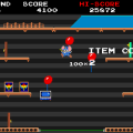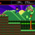 The arcade game Space Invaders DX (1993) is a collection of different versions of the famous title, which also included a “Parody Mode”, which is a rehashing of the usual Invaders gameplay that switches graphic elements with characters of various Taito titles. The first parody level is based on TNZS with Tiki as the cannon and disproportionate enemy sprites as the aliens. It should be noted that the background image is not based on a particular level but is directly inspired by the arcade flyer illustration.