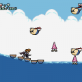 In 2007, almost 20 years after the original coin-op, Marvelous Entertainment developed for Nintendo DS a sort of remake (more like a remixed version) of the game titled New Zealand Story Revolution that takes advantage of the dual screen feature. Except, not really, because the innovations are mostly gimmicky and don’t really expand upon the possibilities of the game. For starters, the second screen is usually reserved for the map, but it remains barebones like in the original arcade, being a blank screen with dots for Tiki, the exit and the key. Yes, there are keys now. The developers decided that this time reaching the cage wasn’t enough so you have first to look for the key to open it, leading to much annoying backtracking. To add insult to injury, sometimes you can warp to a different part of the stage without the key and, since you can’t go back, the only way to finish the stage is to commit suicide and restart.