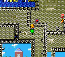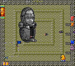 The only version for Nintendo systems is the NES port, by British company Software Creations, which is almost spot-on despite the machine’s limitations. The graphics and backgrounds are almost identical despite the limited palette. The music, converted by legendary British musicians Tim and Geoff Follin, outclasses the soundtrack to every other version, even the arcade release. Some enemies, weapons, vehicles and the maps are missing, the boss sprites are reduced in size, and there’s only one kind of fruit bonus, but almost all warps and secret areas are featured (though not the heaven stages). It’s also the only console port, along with the SMS one, that features the New Zealand map between rounds, and the only one with 1-up items instead of the EXTEND letters. For some reason, the US version was given the totally radical name Kiwi Kraze (not to mention the weird box art).