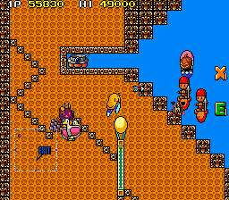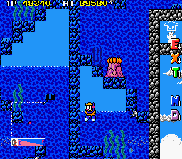 Of special note is the Mega Drive version, which is the only console port based on the prototype arcade board, so the levels are substantially different from all of the other ports. Additionally, it’s also more difficult – there is no map to help navigate these new stages, the time you can pass underwater is shorter and the enemies seem faster and more aggressive. The first few stages are completely new, while others are a mix of pre-existing stages, lacking the Rotorua and Strait Cook levels. There are only 13 levels in this version, rather than 20 in the other releases.