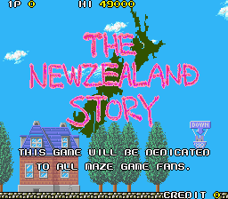 Fresh from the worldwide success of Bubble Bobble (1986), Taito most likely wanted to do another cutesy platform game, with the same simple plot of saving the damsel in distress. In The NewZealand Story, Tiki the kiwi must save his beloved Phee-Phee from the leopard seal that kidnapped her and other kiwis from the Auckland zoo, and sold them all over the country. However, the game itself is substantially different. Instead of single screen levels, most stages are quite large, extending in all directions, and the focus is on exploring the maps, to find the easiest and fastest way to the exit. This is easier said than done, because of all the twists, turns, secret passages, deadly spikes, underwater areas, narrow passageways and all that befits a true maze.