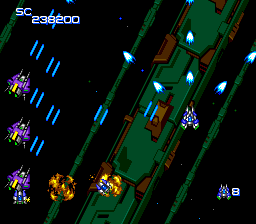 At first glance, Nexzr (pronounced “necks-zar”) appears to be just another Star Soldier clone. And visually, it is – you could place the game next to Blazing Lazers or Final Soldier, and have trouble seeing any real distinction. While the visual style is similar, and on the surface it seems to play the same, Nexzr is a much more polished experience. Though published by Naxat, it was developed by Kaneko and Inter State. These companies had worked with Hudson to develop Super Star Soldier and Star Parodier, which accounts for the similarity with those games.