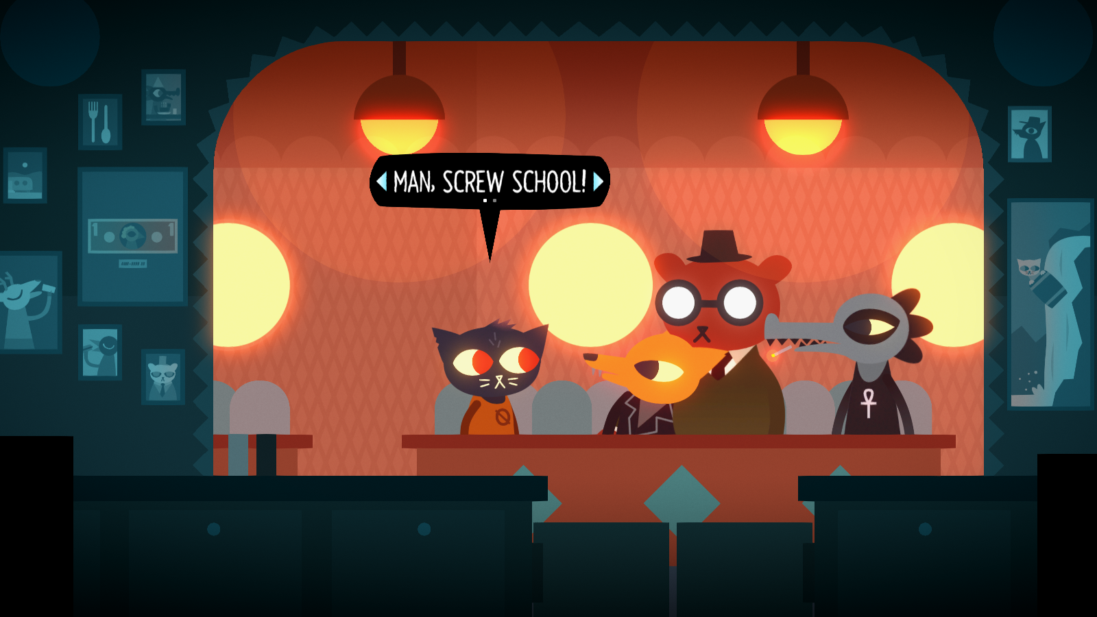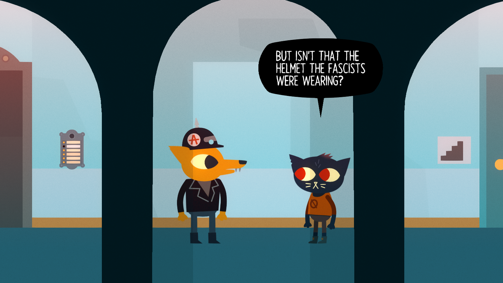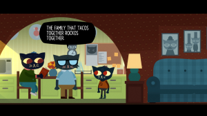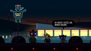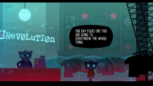 Unlike many other games, it also wears its politics on its sleeve. Both the story and its characters aren’t afraid to espouse the downsides to unregulated capitalism, as it both built and ruined the town of Possum Springs. Its release was a curious coincidence, as it came out just two months after the election of Donald Trump. After all, Night in the Woods takes place in a dying rust belt town in Pennsylvania, the part of the United States that was one of the major aspects that tilted the election in his favor. The story acknowledges that many problems are real but greatly disagrees on how to deal with them. One of the major themes of this game is “What lengths will people go to return to a place that can never exist again?”, from both a personal perspective (growing up) and a broader perspective (a dying town). For the latter, the game makes it clear where Mae and friends stand on this issue.