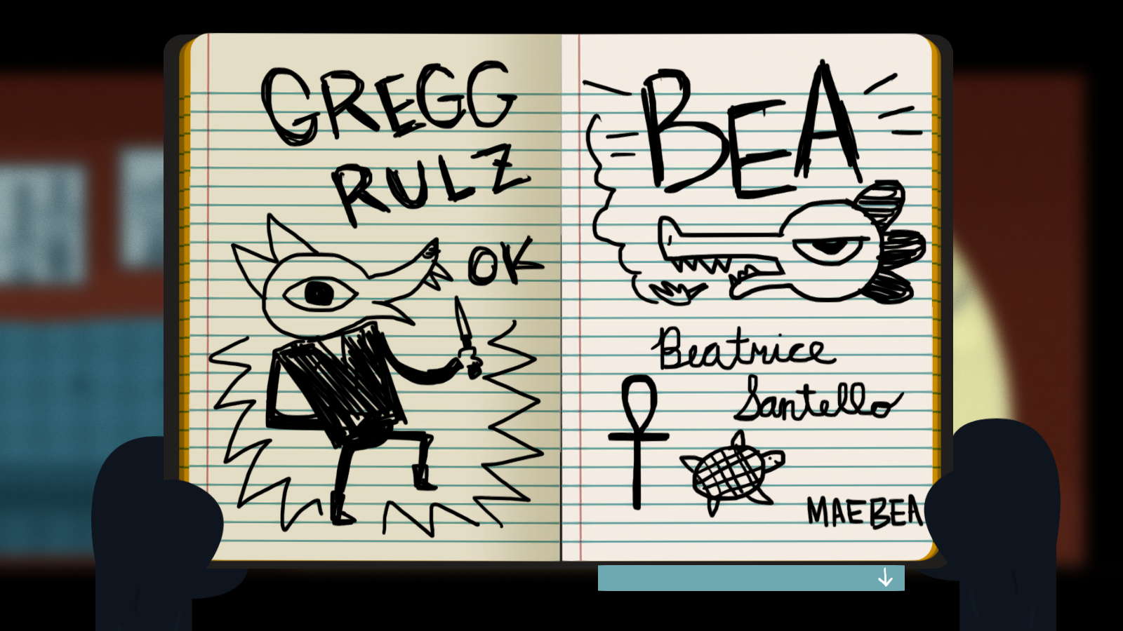 There are a few mini-games too, like where you need to shoplift something without a clerk noticing, or knock out fluorescent lights with a baseball bat. There are also a few rhythm game sections when you join your buds for band practice. There’s no way to actually “fail” these though, as it’ll just potentially change some of the doodles in Mae’s notebook. The music sections are deliberately difficult, if mostly because, as Mae complains, she doesn’t know the song and she hasn’t played the bass in forever, so the game expects you to be awful at it too.