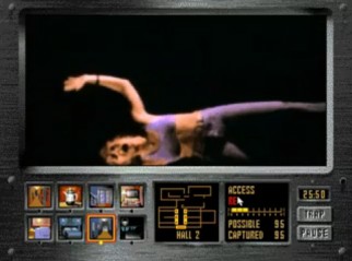 Night Trap is one of the the first CD titles to use full motion video (FMV) and audio. The basic concept is you watch footage of a low budget horror film and are required to press a button at certain times to save the characters as they are being attacked. If you do this correctly, footage of them escaping will be shown and the film will continue, giving the impression that you have had some control of the movie. What makes Night Trap more clever than today’s DVD games or the FMV titles that followed it, is that you also have to tear yourself away from the movie, which isn’t too hard, to check over locations in the film where the main action currently isn’t. At certain times, these locations show footage of invading monsters, and require you to press a button at the right time to capture these too. Failure to do so will result in a Game Over.