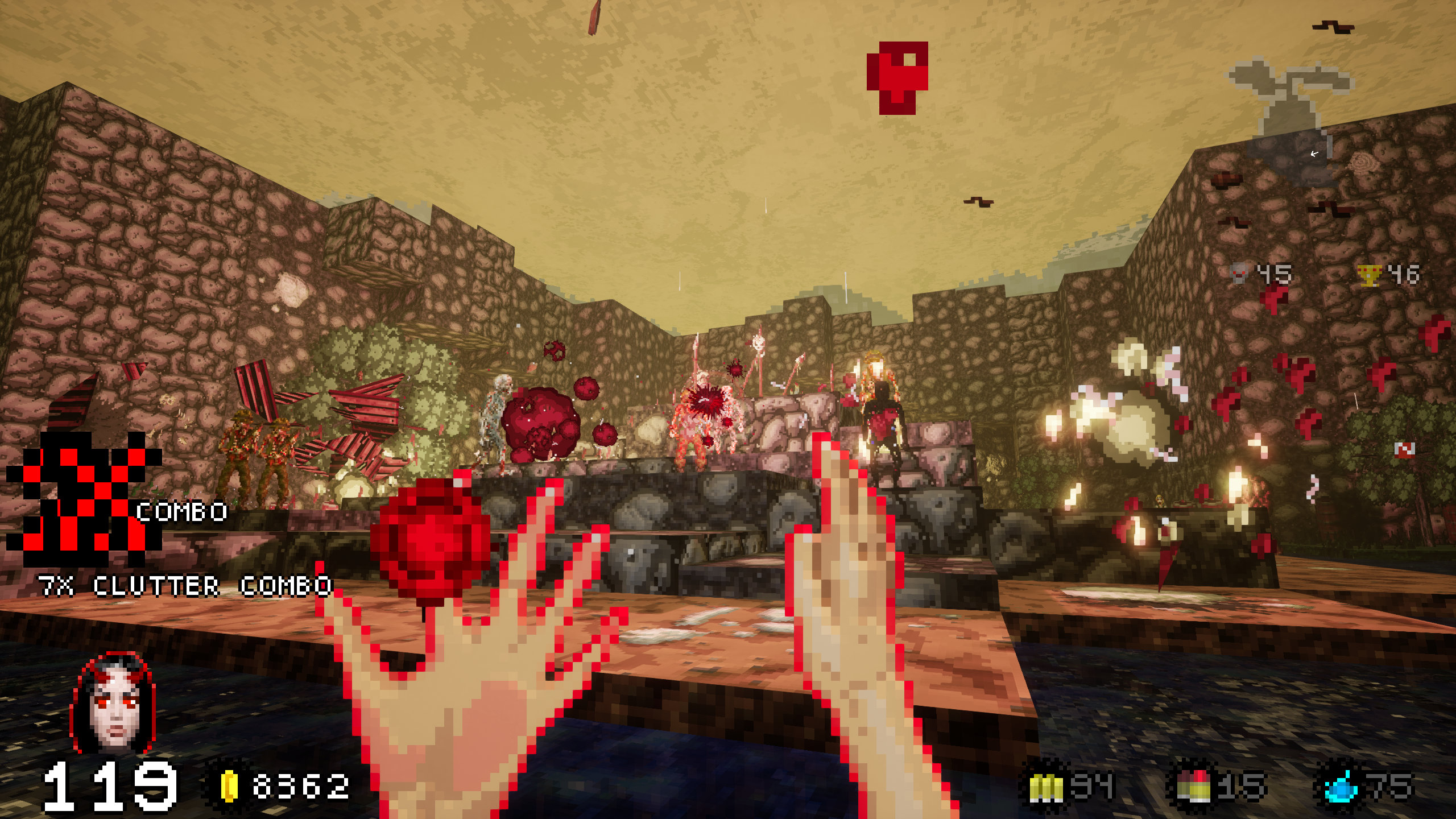 As things get more ridiculous, so do you. It’s not just doing more damage, it’s having the tools to be dangerous and risky and survive more often than not. You can go into danger and completely flip a situation on its head, using a mixture of quick thinking, aim, and reflexes to create an extremely satisfying core gameplay that becomes the lifeblood of the whole experience. Levels are small enough too that it creates an addictive loop, similar to Project Warlock using short and simple structure and adding to it for variety and excitement.