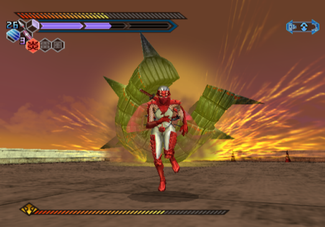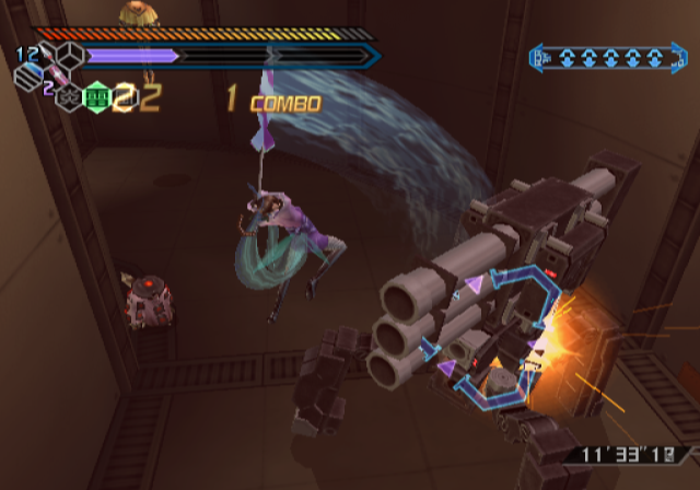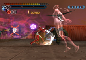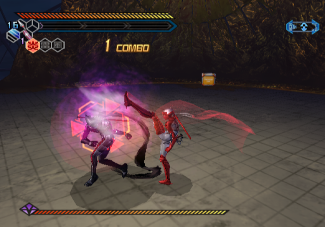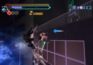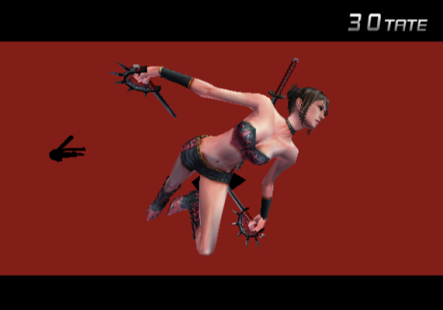 Tates are handled a little bit different now – every time you finish a combo (or grab power-ups), a tate meter fills up with energy. When filled sufficiently, it allows Hibana to send out a projectile image of herself, doing lots of damage when following on from a high combo. This makes boss battles much less of a headache than in the previous game, as it’s much easier to tate them. Also new is a jump kick maneuver, which breaks down enemy shields and allows for even more crazy midair dashing action.
