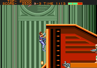 Other notable titles are the NES movie tie-ins Batman (1989) and Darkman (1991), which both feature masked, dark, ninja-like heroes. While Batman went for a wall-jump relying on timing like the later Master System Ninja Gaiden, the climbing in Darkman works just the same as in Ninja Gaiden III, only not as reliably. Sega didn’t introduce climbing and wall jump abilities into their very own Shinobi series until 1993, when they released Super Shinobi 2 (or Shinobi 3in the west), possibly inspired by the company’s sojourn into the Ninja Gaiden series. The endings in both Super Shinobi games are also suspiciously similar to cut scenes from Tecmo’s series.