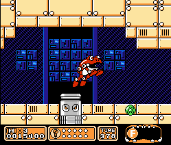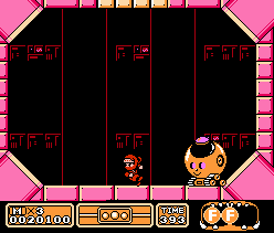 A space suit? Yes, Jajamaru and friends have left behind the cartoonish world of Ancient Japan for outer space, where a whole bunch of vegetable themed planets have come under attack by evil forces. (The subtitle translates to “Epic Galactic Battle”.) It allows for a few interesting levels – the hot pepper planet, for example, is the stereotypical fire stage, and standing in place for too long results in burned feet. You can also play as either Jajamaru or Princess Sakura, although their abilities are essentially identical.