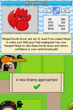 Where the game came from and its overall quality makes it an interesting title for the DS. It’s sort of like Carmack’s Orcs & Elves in terms of design goals, but with significantly more personality, not just giving instructions some flavor in basic but engaging play. It’s not really amazing, but Ninjatown has so much charm and such tight design that it’s hard to forget it after playing it. You wouldn’t think one of the best made strategy games on the DS would be based on cutesy ninja toys, but that’s the case, and it’s a fun little game worth trying if you haven’t before. It almost won a BAFTA, it is absolutely not something to pass up.