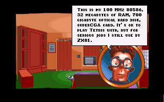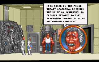 The game plays similarly to Lucasarts’ Day of the Tentacle, but actually predating it by two years, with three characters living parallel adventures that overlap a few times and get united at the very end. Dynabyte named this system “Parallaction”, which is also the name of the game’s engine.