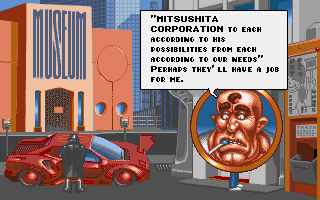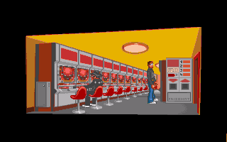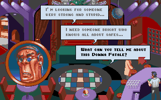 At the end of the 80s, an Italian software house named E-Motion signed a contract with British developer Mirrorsoft to publish their first Amiga game, a platform/shoot-’em-up hybrid named Crimetown Depths, that surfaced as a demo in 1989. It had a gritty cyberpunk setting rendered in an interesting graphic style, but unfortunately for them Mirrorsoft went down when the game was about 90% completed. A few years later several members of E-Motion founded a new company named Dynabyte, whose first job couldn’t be more different than Crimetown Depths: a humorous graphic adventure that followed the success of Sierra and Lucasfilm Games’ most famous productions. So Nippon Safes Inc.was born.