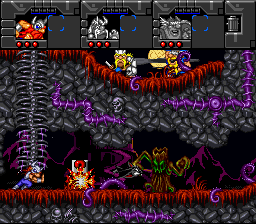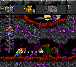 The other major addition are two new characters, Fang the Werewolf and Scorch the Dragon. You’ll never have more than three characters in your party at the time, but in each level, you may have some of your characters swapped out, or end up having less than three. Fang can attack at short range with his claws, and he has Erik’s jump. Unlike Erik, he can perform a very Mega Man X-esque wall jump. Scorch can fly upwards, although he gets tired quickly, and he can glide down from high places safely. He can also shoot long range fireballs.