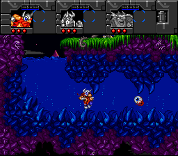 All the Vikings have new gear, and with it, new moves to go along with all their old ones. Erik can double jump to reach high places and smash blocks above him. He can also swim underwater, which is especially useful since the other Vikings still can’t. Baleog traded in his bow and arrow for a bionic arm, which he can use to hit enemies and pick up things from long range. To make the homage complete, he can even swing across gaps, although only from certain swing points, sadly. Olaf can shrink himself to fit through tiny passages, and, well, to put it bluntly, fart to give himself a boost while gliding and to bust blocks below him.
