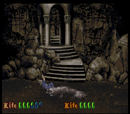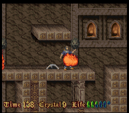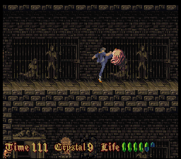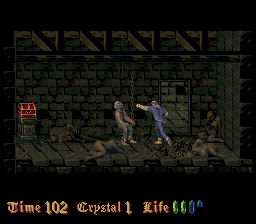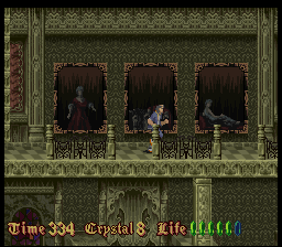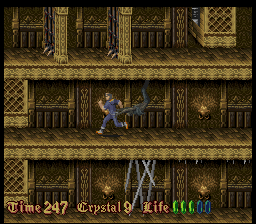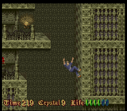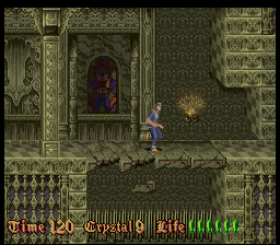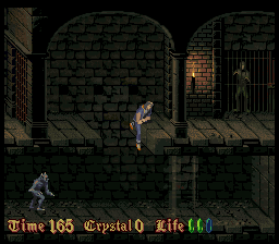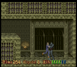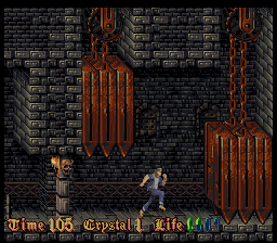Befitting for an imitator of Prince of Persia, much attention is paid to the animations. But even in still images, the pixel art looks very detailed for a mid-era SNES title, but the colors look very monotonous. Every castle has a different tapestry, but that can’t conceal the fact almost through the entire game, the player is looking at nothing but brown-ish, grey-ish and green-ish castle walls. The music also feels subdued compared to the synth orchestras of a Castlevania, definitely more on the lingering, submerging side of the spectrum, full of samples that sound like heavy breathing and foreboding melodies. In a way that makes the soundtrack more worthy of a horror game, but every once in a while there is a tune that sounds more game-y than eerie and breaks the spell.