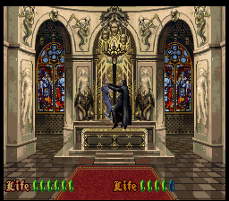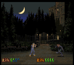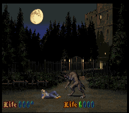 The 16-bit Nosferatu offering by Seta can hardly be described as even maintaining a most tenuous link to the movies. It seems like the developer just dodged to the title because “Dracula” for video games was already taken by Konami (as Castlevania was called Akumajou Dracula in Japan). Even a brief look at the cover reveals that the vampire here adheres to the handsome womanizer image of Dracula rather than the ghastly spectre that was Orlock. The entire game takes place within Transilvanian castles, where the Jonathan Harker lookalike Kyle seeks to rescue his love Erin from the vampire’s clutches. On the continue screen there is a photo of Kyle with his sweetheart, which is dated March 8, 1990 but nothing else in the game hints at a modern times setting, except maybe for the protagonist’s clothes, which still look rather period-neutral. Even on his way to Transylvania, he rides on a horse instead of any kind of motorized vehicle.