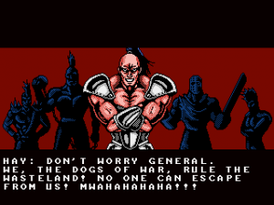 Oniken sets out to evoke NES feeling with its presentation, too, although it cheats a lot while doing so. The color palette seems about all right, but the larger bosses would make the Super NES proud. The occasional parallax scrolling is also more advanced than the 8-bit hardware would allow for. The screen resolution is thankfully also oriented towards modern non-widescreen displays, and of course we’re spared the NES-typical sprite flickering. While those are minor details the most noticeable difference from the classics is a change in tone: human enemies die in a gory mess rather than just bursting into flames like the machines, and there are some very graphic cutscene deaths of the main antagonists. The lack of Nintendo brand censorship also extends to the script, which contains occasional strong (yet safe-for-work) language. There’s also something in general about the way the sentences are written that just doesn’t feel true to the NES era. Having to fit the English sentences into the space of a much more economic Japanese original gave games like Ninja Gaiden an unique feel of brevity and urgency, whereas Oniken feels a wee bit more verbose.