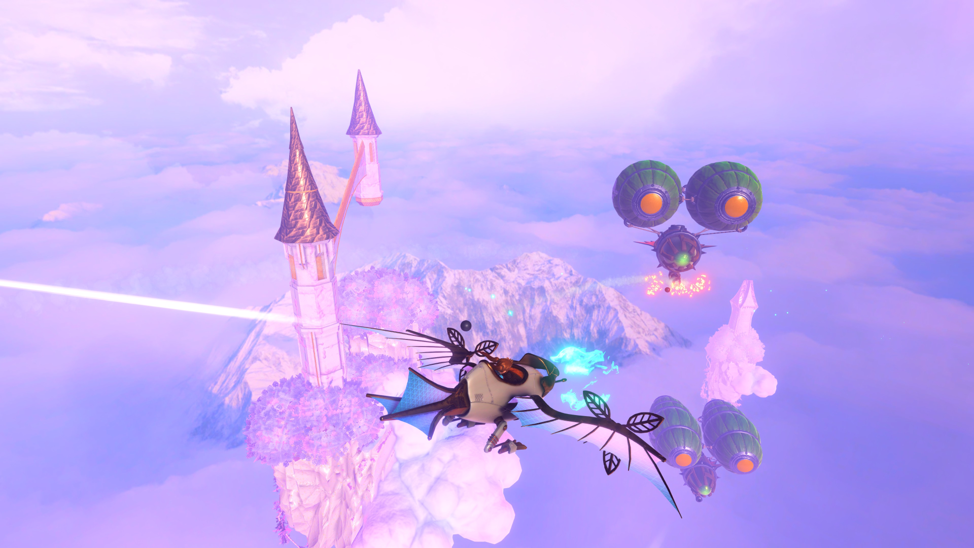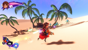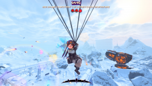 Essentially, the core platforming and combat gameplay is polished, but when the game tries something different, that’s when it usually hits problems. Sometimes mild, sometimes major. Aside from that, there are sometimes moments where what you’re supposed to do isn’t obvious, such as one level that has mountains with giant dandelions at the top. You’re supposed to get up top and jump to a dandelion so you can slowly ride it down, and up updrafts that can be activated via some switches, so you can reach other mountains. However, it’s sometimes possible to reach other mountains through creative use of jumping and mid-air dashing, making it even less obvious that the dandelions are the intended solution, and the only way to reach the other remaining mountains.