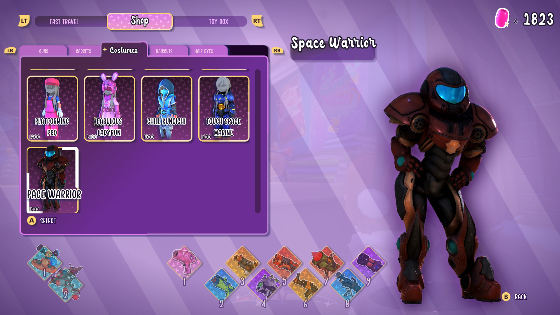 The weapons themselves can be earned from defeated enemies, found in treasure boxes, or purchased at stores which also sell outfits (some of which are themed after various gaming and media franchises) and let you fast travel. If you use the same weapon that the current enemies do, picking up their weapons refills ammo.