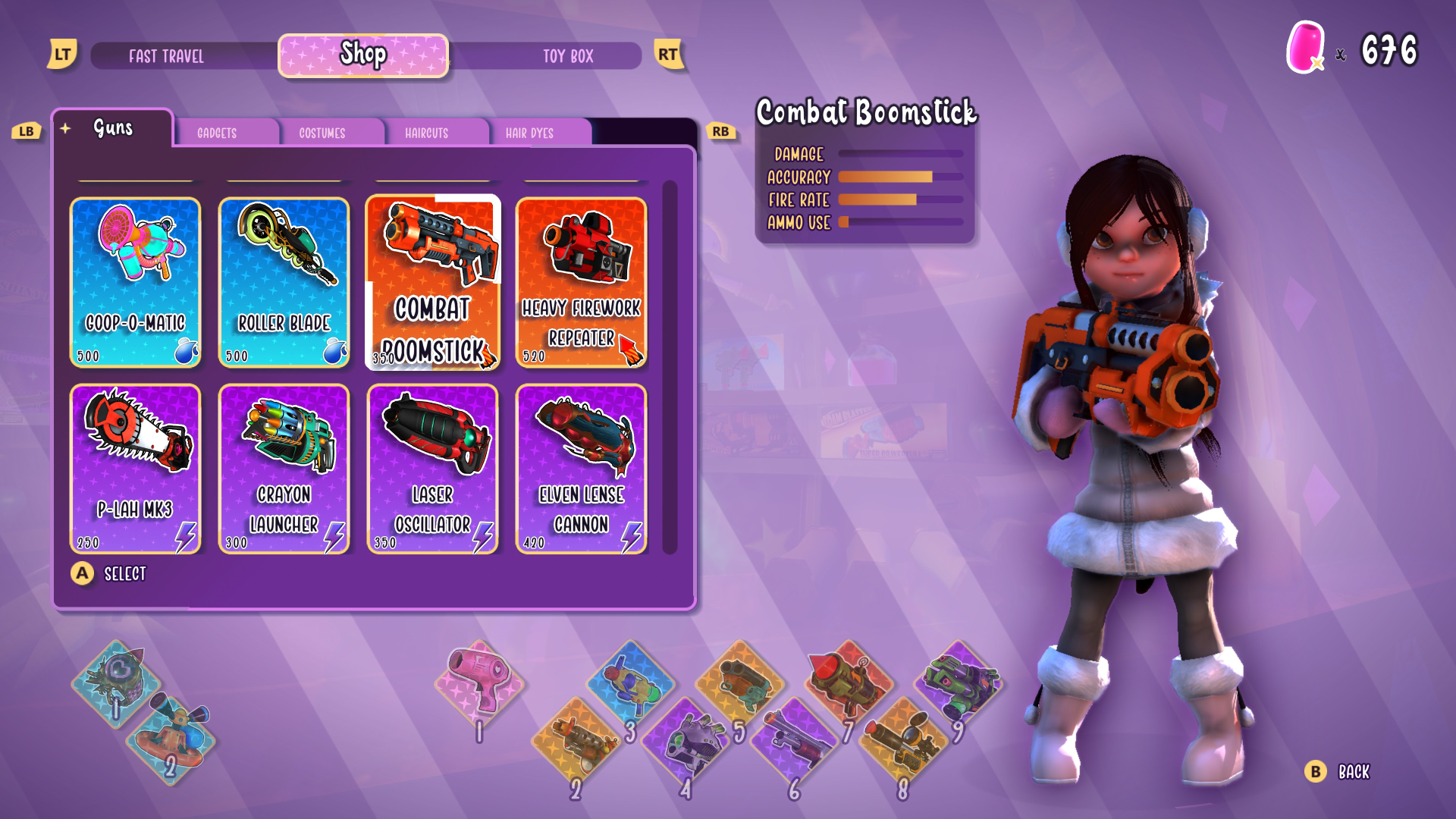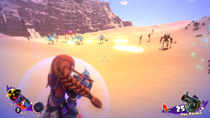 Speaking of, there’s a major “little kid” theme going on. Weapons both used by you and enemies shoot things such as bubbles, water, crayons, pencils, fireworks, nerf-like darts and even paint. One of the outfits you can buy is called the Cootie Slayer. Do kids still think about cooties at all? The bad guys even give each other ice cream as a reward. A major character in the story is Prince Blueberry, who comes from a candy kingdom.