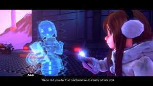 It’s worth pointing out on the content side of things though that while most of the violence is not graphic and simply involves enemies collapsing and fading out, there are two exceptions: zombies (a late game enemy not encountered until about 40ish hours in) splatter in purple blood with their heads breaking off when they’re killed by melee attacks, and enemy astronaut soldiers in a zero-gravity outer space level float through space (instead of vanishing) when killed. Finally, profanity is almost nonexistent (some enemies even outright say “darn it!” in the heat of battle), but there is the very rare “hell” or “damn” in some easily missable NPC dialog.