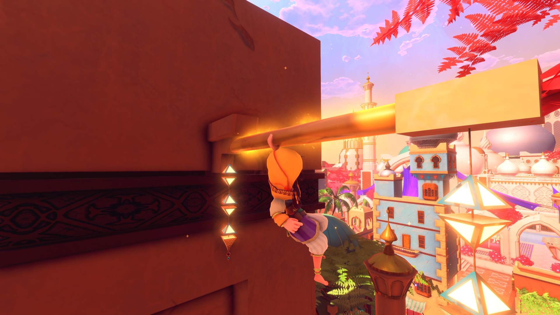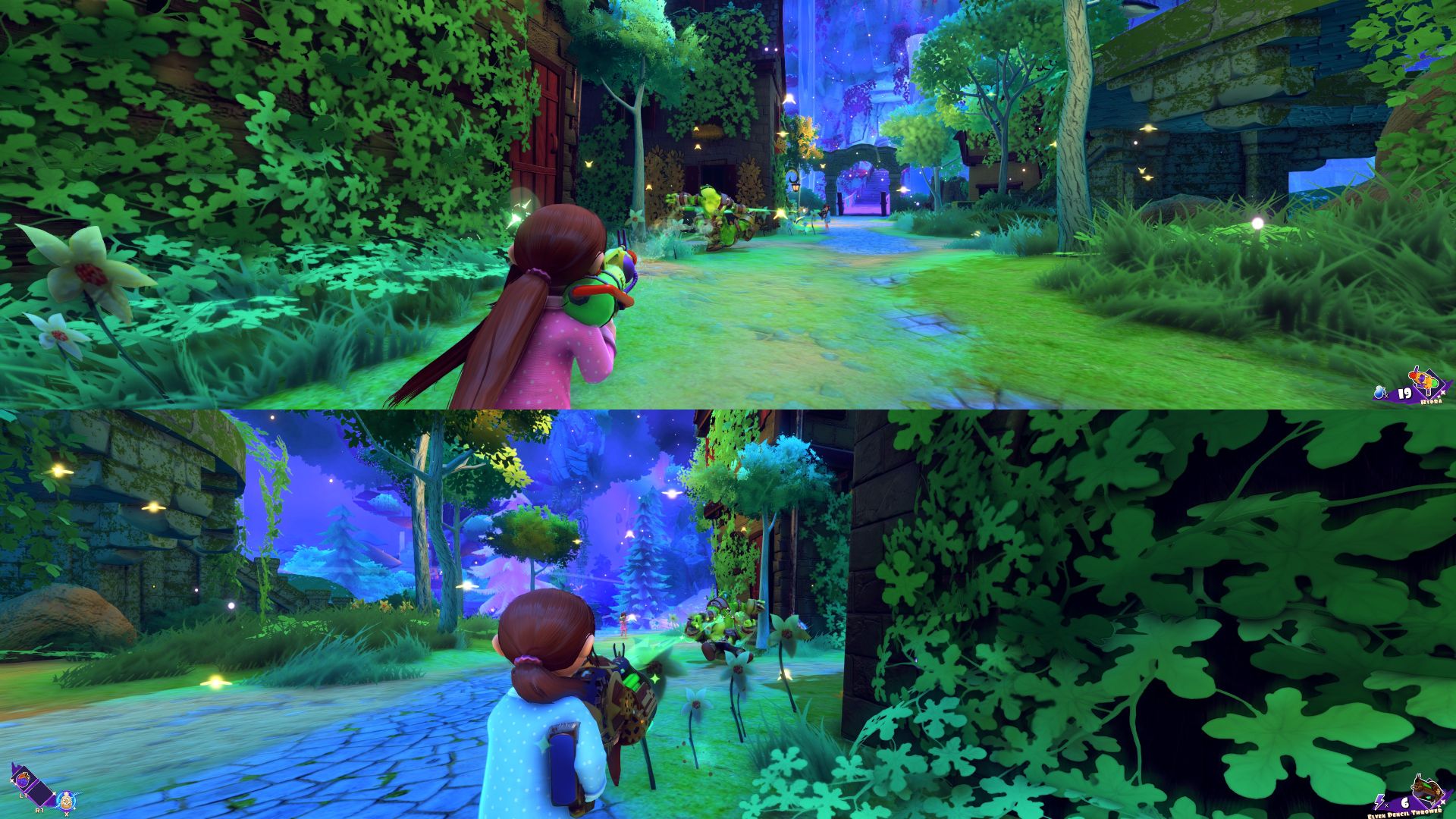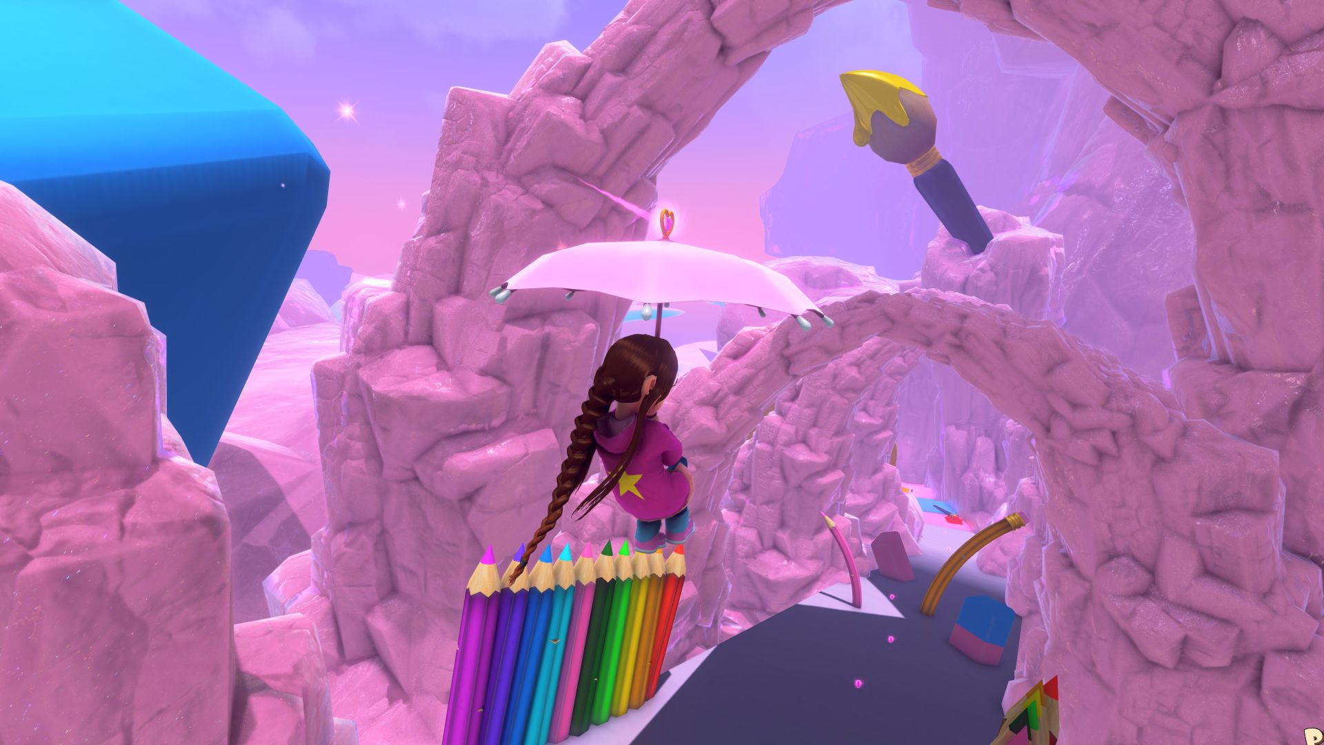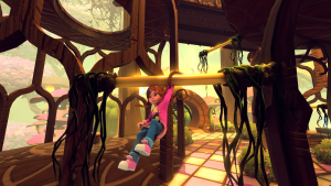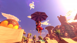 Platforming is also a huge part of the game. You gain abilities over time that let you do double jumps, mid-air dashes and floating with your umbrella, and the more challenging platforming sections are built with those entirely in mind.