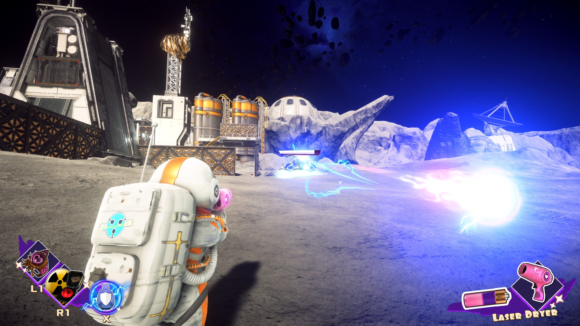 There are many hidden upgrades for your weapons, health and stamina. All of these help a lot, as the game will sometimes put you in combat arenas or boss fights where ammo does replenish from openable containers… but not always, sometimes resulting in you having to rely on your infinite ammo hairdryer. Stamina allows you to run longer and perform dashes more often.