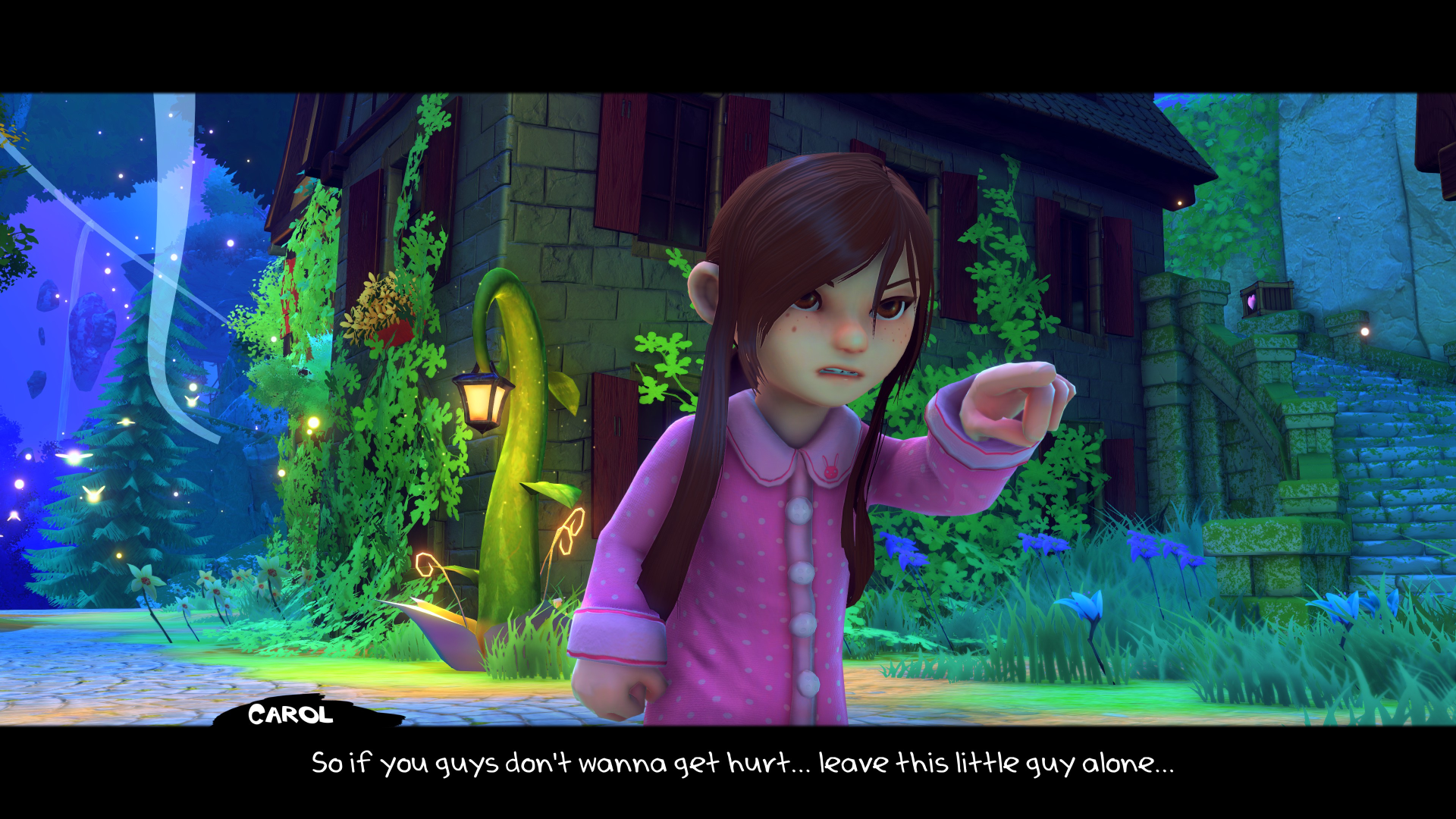 Carol is immature and bratty, and she makes it clear that she’s not fond of many of the creatures she meets and is focused on her singular goal of rescuing her Bunbun, though she does mellow out over time. After beating a dragon boss in the early game, Carol asks why it hates humanity, then as the dragon is giving his answer, changes her mind and says she doesn’t care, and smacks it with her umbrella. In a way, Carol is going full id. She does what many kids only dream they could get away with! Perhaps that’s part of this story’s dream logic, as it does take place in a dream world after all.