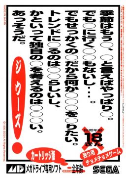The Japanese version of the The Ooze has quite an unusual cover, showing lots of Japanese text against a white background, with some words censored and a “no under 18” logo, suggesting an adult product. An interview with product manager Takayuki Kawagoe (found in the Sega Consumer History book) clarifies how it ended up that way: