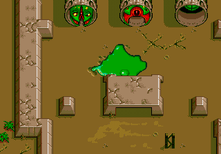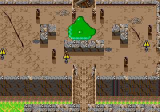 Our hero must, then, slowly crawl around as a puddle of nuclear waste to try and get his revenge while, perhaps, also find a way to turn back into human form. To design the movement of a mass of green particles, the team actually set out to render everything as realistically as possible, spending quite some time to make the concept work, which led to delays as its release was originally planned for early 1995.