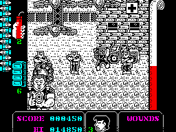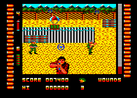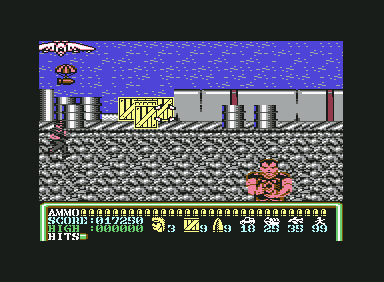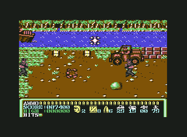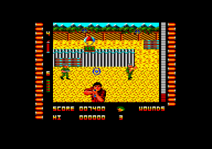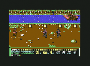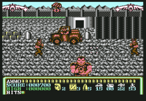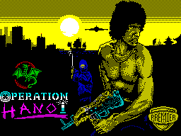 Operation Hanoi is a blatant Operation Wolf clone from Players Software for the Commodore 64, Amstrad CPC, and ZX Spectrum. It looks and plays almost identically, right down to the visual style, explosive grenades, and kill quotas. There’s not even anything to distinguish that this game takes place in Vietnam rather than South America (though to be fair, the original Operation Wolf often looked like it took place in southeast Asia too). The only distinction is that it moves the right status bar to the bottom of the screen (as with the console ports of Operation Wolf), and the levels only scroll left-to-right, whereas Operation Wolf scrolled in both directions. There are also only three stages, making it half the length of the game it’s based on. Still, despite its shamelessness, it’s mostly competent, especially since it was sold at a discount price.