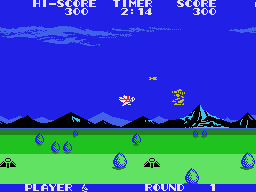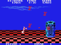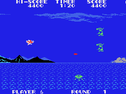 There’s only one stage, with three sections – one over land, one over sea, and one over a checkerboard pattern, where you fight the Space/Time Oscillation Bomb. But this is only three minutes of gameplay, then the game loops infinitely. It’s not even an interesting setting since it only encompasses the first episode of the anime, ignoring the unusual jungle-like worldview that made it so interesting. At any rate, shooters were uncommon on the SG-1000, as were anime tie-ins, but this one is still a dud.