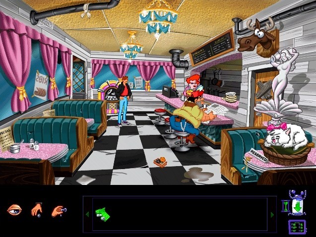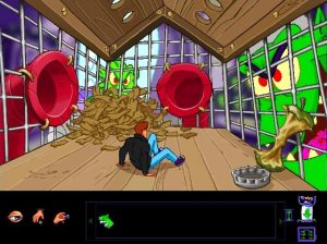 The game’s graphics are done in the style of traditional western animation. The characters are surprisingly well drawn, fluid and energetic, similar to LucasArts games like Sam & Max Hit the Road and Day of the Tentacle. The backgrounds are of the same quality, making the entire game a pleasure to see. Unsurprisingly, several of the lead designers, programmers and artist went on to work for Disney Interactive and LucasArts. To compliment the excellent animation, all of the characters have an abundance of things to say, and all of the dialogue contains humor and personality. The English version of the game benefits from recognizable voice actors such as Rob Paulsen (Teenage Mutant Ninja Turtles, Animaniacs) and Jim Cummings (Aladdin, Goof Troop). Even the bit characters are well acted, which is a great touch.