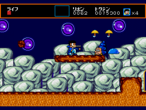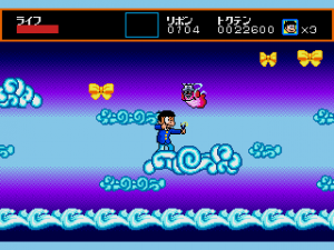 It’s easy to get lost or end up back where you started, but if you’re systematic in your search, you’ll eventually find your way. The layouts are not completely illogical; cliffs and holes in the ground usually lead down to cave areas, while yellow clouds take you up to the sky. Doors, however, can lead you pretty much anywhere. There are also invisible doors leading to bonus areas, but those leading to the main areas are always visible, so it still isn’t quite as difficult to navigate as games like Hi no Tori on the Famicom.