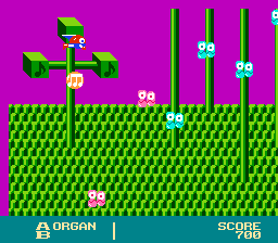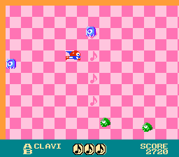 What is most compelling about this title, well over twenty years of age, is the advance it introduced in that particular period of history. Apart from the astounding Boss theme, Otocky does not have a soundtrack of its own, but rather a predetermined beat or bass loop that plays as aural background. According to the different direction in which the player tosses the spheres, a different musical note will be emitted: it is in the repeating of this action that single musical notes become a chained melody, each of them set to match the background’s rhythm in a preordained scale so that the interactive and real-time phrase will never feel inaccurate. Consequentially, the game presents a scenario where the music is not entirely pre-conceived as it is, in fact, created by the player in result of the actions he performs during the game.
