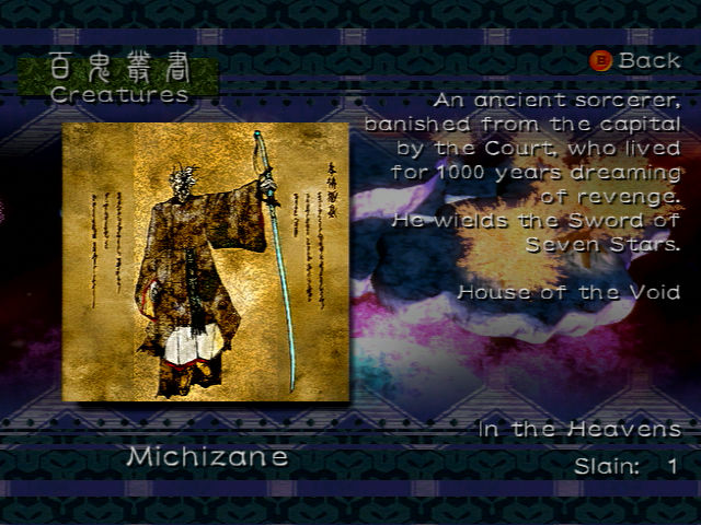 Lastly, there is the House of the Void, the power of ‘Kū.’ Raikoh has no relation to this house, and the only inhabitants of this house in the first Otogi are enemies. Thus, Raikoh cannot use any of this magic, and many of the members of the House of the Void that Raikoh fights are extremely powerful. The powerful sorcerer Michizane occupies this House.