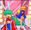 This duo of mechanical bunny girls are essentially roboticized versions of Hikaru and Akane, who initially appeared as playable characters in Gokujou Parodius. They helm the Metal Slave, which is the final boss of the MSX version of Salamander.