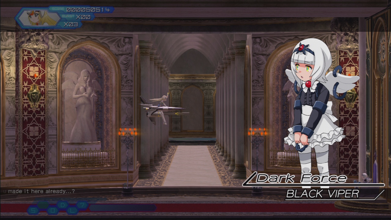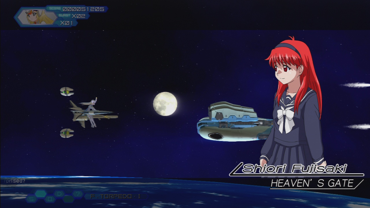 Straf is Arnval’s sister, and also from Busou Shinki. The Alphina is the third selectable ship in the Gradius 3D spin-off Solar Assault. Two of her weapons, the Psycom Laser and Mind Blast, are taken from that game. Unfortunately she is only available as DLC.